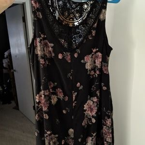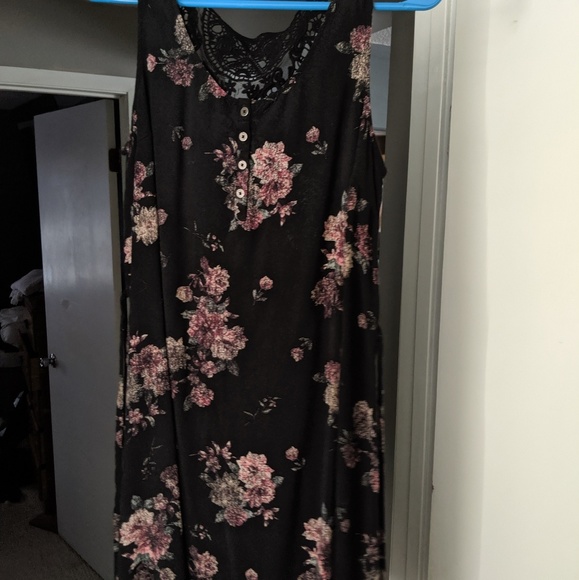 Black floral dress with lacey back. Length is just above the knee