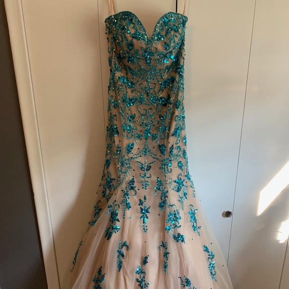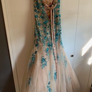 Morilee worn once, lace up back to fit larger or tighter.