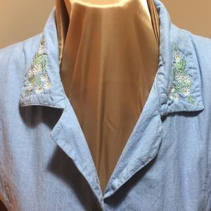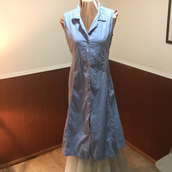 Ladies sleeveless dress with pockets in the scene and attach belt that ties in the front or the back