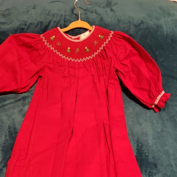NWOT - Perfect Christmas Dress Stich w/Christmas Trees & Wreaths. Puffy Longsleeves