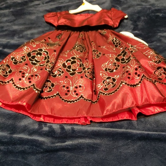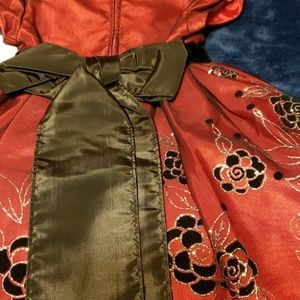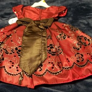 Little Girls Burgindy & Black Features Sparkle Embellishment For Another Note of Distinctive Elegance. The Features Zipper Closure and Tie Sash For Extra Cutness.