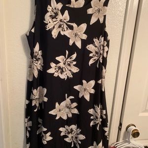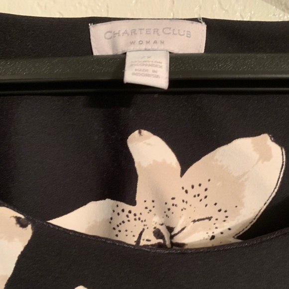 Sleeveless Charter Club Woman 2x very stretchy will fit a 3x. Fits above the knees. Black with tan and white flowers.