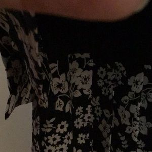 Multiple colors navy and white. Shoulder pads short sleeve pleated bottom full zipper in back 43 inches back armpit to armpit 22 inches pleats 14 inches long. Buttons on side don’t open just for show.100% polyester machine wash cold water.