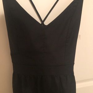 Sexy black dress! These pictures do not do this dress justice! Straps that start in the front and criss cross on the upper back (with an entire open mid back!) This dress is absolutely a head turner! So simple, yet so amazing!