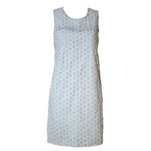 Very cool & comfortable white & baby blue fabric in beautiful EUC. Fully lined, side pockets, zip back and bra stay snaps.