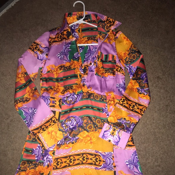Colorful long sleeve dress with 2 slits. Perfect for night out or date!