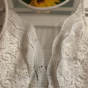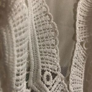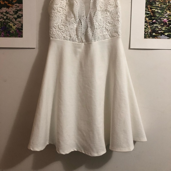 Beautiful white dress, with lace/mesh on the top and an open back. Only worn once with no stains and from a smoke free home.