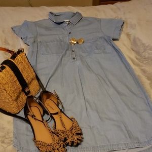 Light denim dress for a beautiful hot summer. Throw on a cardigan and rock it to Late fall after work dinner with friends.