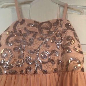 Worn once to NYFW. Beautiful pastel pink sequined chiffon baby doll strapless dress.