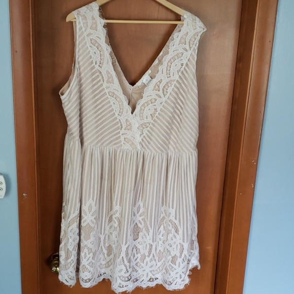 This is a tan dark Cream dress with an off white Lace detailing overlay The whipey's all around the edges of the dress are not itchy it's very soft and has an underskirt only wore once for a date night