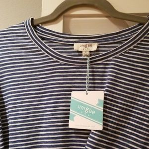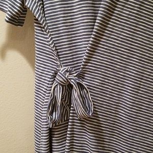 T-shirt dress, easy throw on dress, can tie as loose or tight as you wish in front, length about 3 inches above knee.