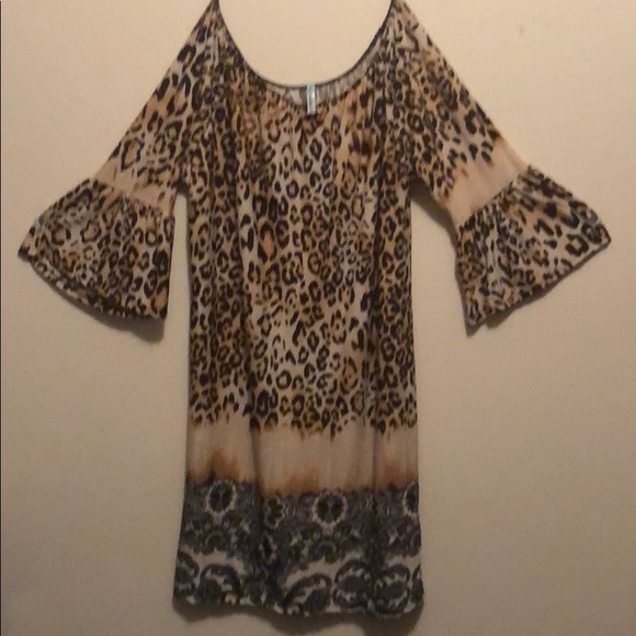 Leopard print bell sleeve off the shoulders size L great w/cowboy boots NWOT