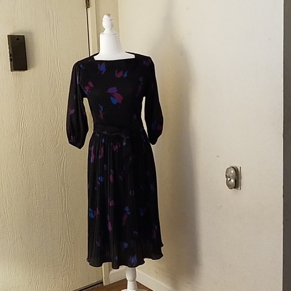 Long sleeve 100% polyester pleated dress