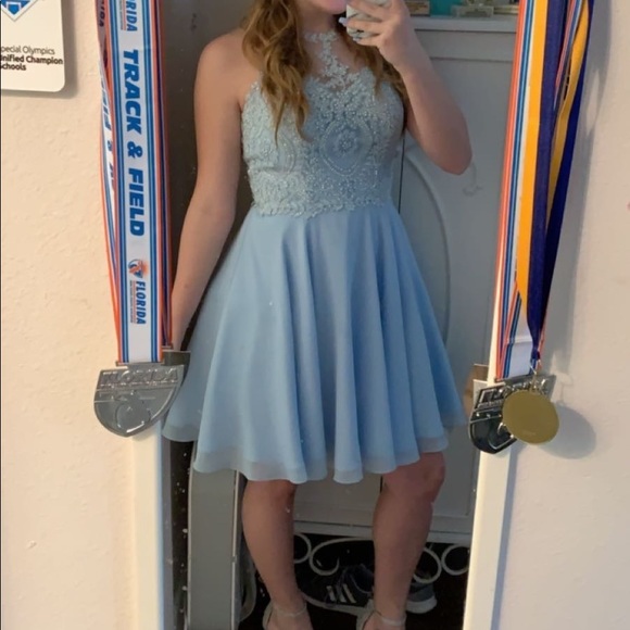 very gorgeous dress. worn once at homecoming! very pretty high neckline