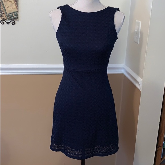 Navy blue, lace over nylon shell, beautiful flutter detail on back