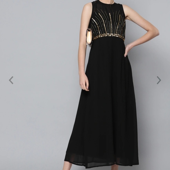 Women stylish solid black maxi dress