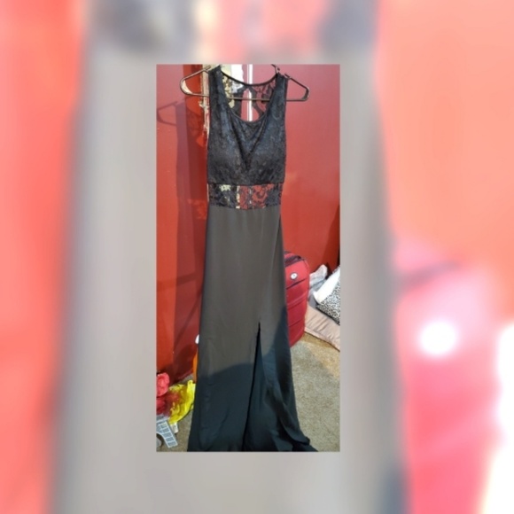 Black long dress, with leg cut. Open back, transparent on tummy part. Worn only twice! Great conditions. Open to offers.