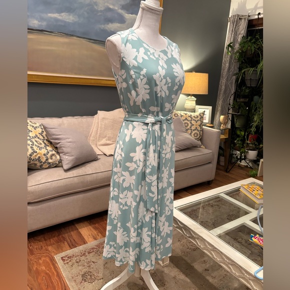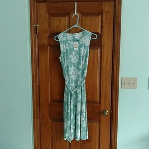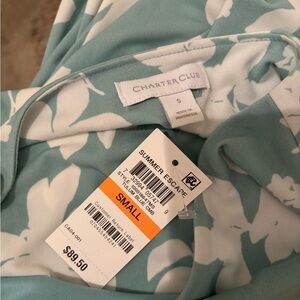 NWT~Charter Club Dress~Soft mint green with cream flowered pattern. Polyester and 5% spandex. Machine washable