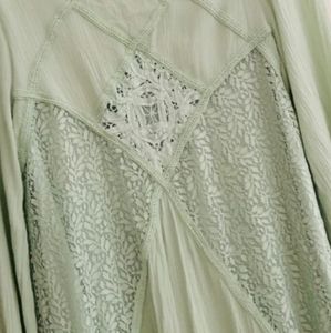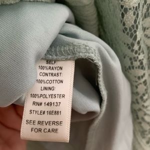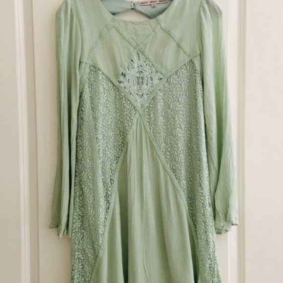 Very cute slim A line flirty dress with sexy open back detail and lace on front & back of dress. Easy to wear dress up or casual.. Soft mint green, perfect length to show off your legs. Size small, brand is "Fashion on Earth".