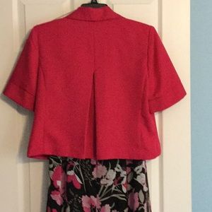 Vibrant Jacket dress, polyester. Very cool and comfortable. Dress is sleeveless, jacket is like”swing” style. Sheer with black underslip.