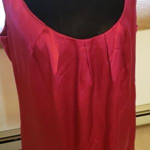 Size 14 silk sleeveless hot pink dress with side zipper and pleated front and bottom. 33 inches from the neckline. Perfect for the holiday season.