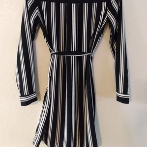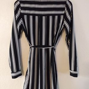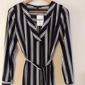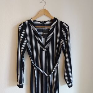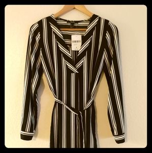 Forever 21 Black and White belted striped dress with long sleeves. Measurements: Chest 14.5in Arms 21.5in Length 34in Brand New!