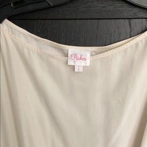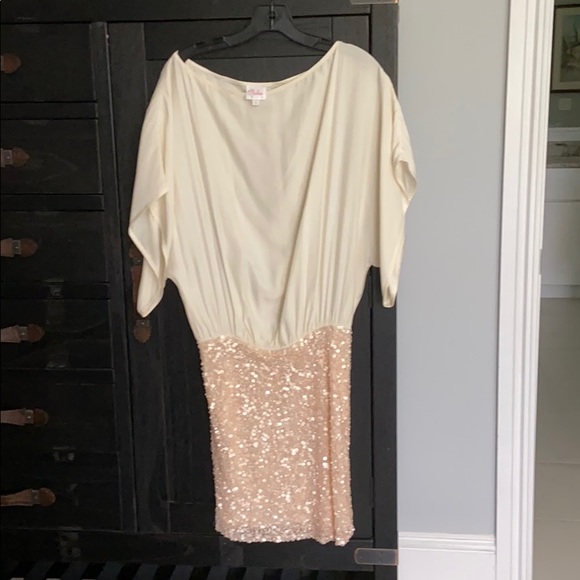 Short dolman sleeve silk top with pale pink sequins on the bottom