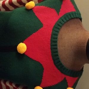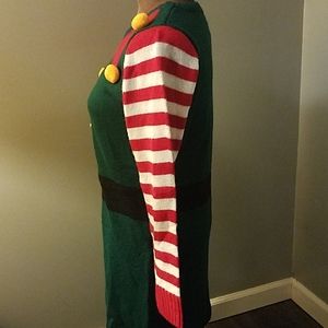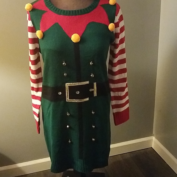 Long-sleeved Christmas dress in soft wool, decorated with bells and design with belt.