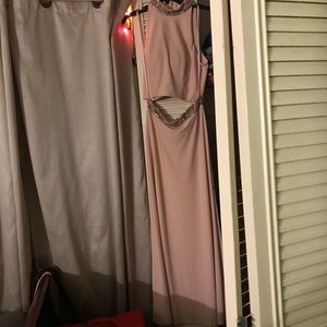 It is a two piece set. The top is more of like a crop top & the skirt part is long. The top and bottom both zip up.