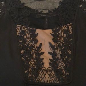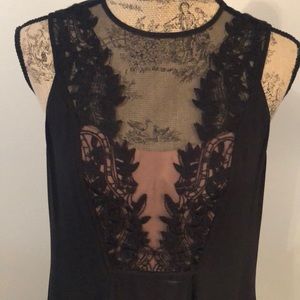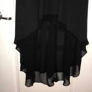 Beautiful, comfortable & flattering with a slightly loose flowy elegance that moves beautifully with you! Chiffon with lace panel at neck. The shortest point hits at about 30” from armpit with an additional 1.5” of sheer underskirt. Never worn