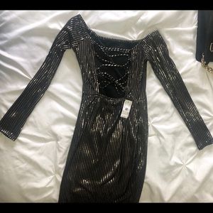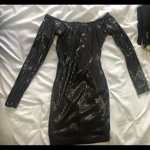Black and gold mini dress