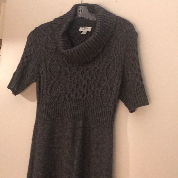Gray sweater dress with cowl neck