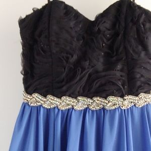 Black and blue cocktail dress. Beautiful party dress with sequins in the black part of dress.