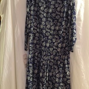Vintage Square neck, 8 button front, drop waist, long sleeve , easy, comfortable, go everywhere, day to night, dress up or down dress. Sleeve length 22 inches. Underarm to Underarm 20 inches. Shoulder to hem length 44 inches.