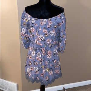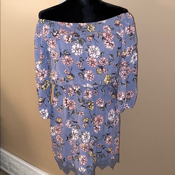 Grey/blue/ dusty pink dress. Wear off the shoulders or as a scoop neck. Worn once!