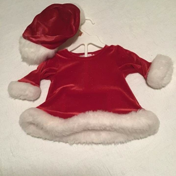 Adorable Christmas dress with matching hat. Pretty little sparkles throught out. Gently used