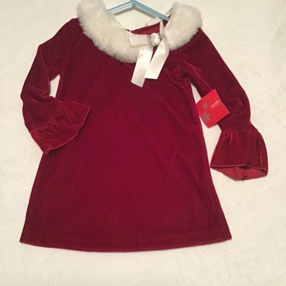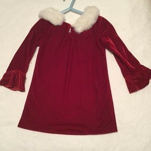Beautiful soft Christmas with removable faux fur collar. Missing bloomer and has missing button hole