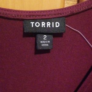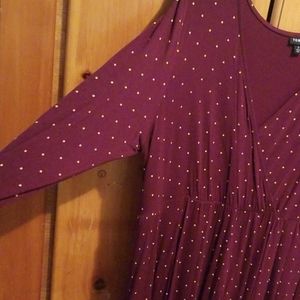 Knee length dress, long sleeve. Burgundy with gold dots.