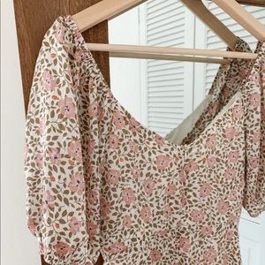 Color: Ivory with tan/pink floral print
