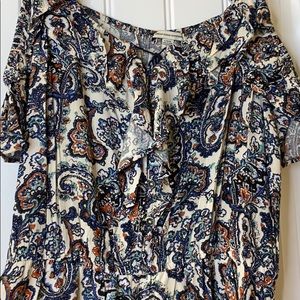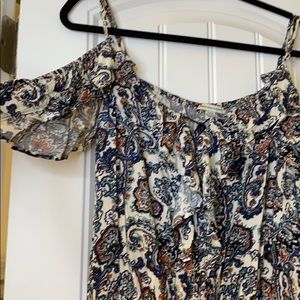 Open shoulders, beautiful design throughout! Ruffles from sleeves to cleavage