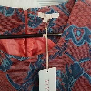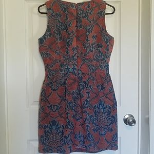 Beautiful dress. Color is salmon and blue. Size medium, fits like a small.