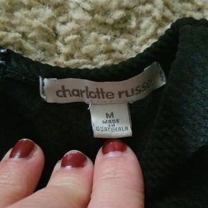 This is a little black dress! Size medium from Charlotte Russe. I honestly forgot I even had this dress. It is short. I am 5 foot 3 and it covers my entire thigh. So if you are taller it might be a little bit shorter. Has no stains or tears. I wore it one time about 5 years ago. Hahaha. Honestly it's a perfect little cocktail dress. Pair it with some red heels and some pearls and you are irresistible.