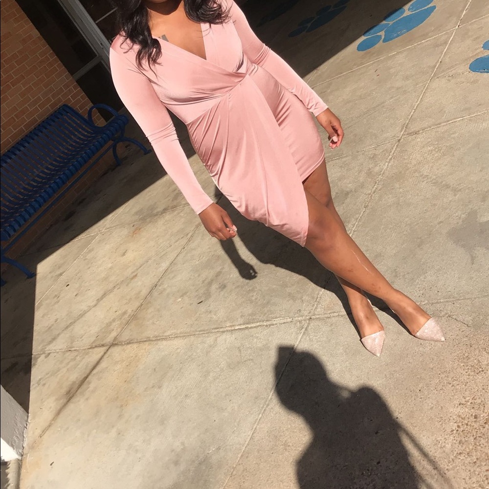 The dress is silk material. Formal dress that is all pink, dress was worn for 2 hours.