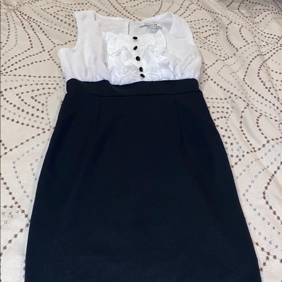 Forever 21 black and white dress with black buttons and ruffles. Super cute.