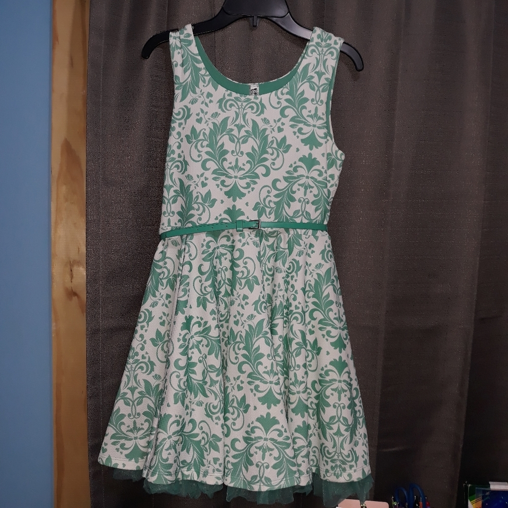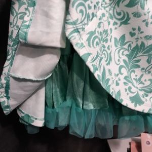 A super cute dress with floral teal design. Can be used for a formal party or for a casual day. Worn once, looks good as new!