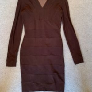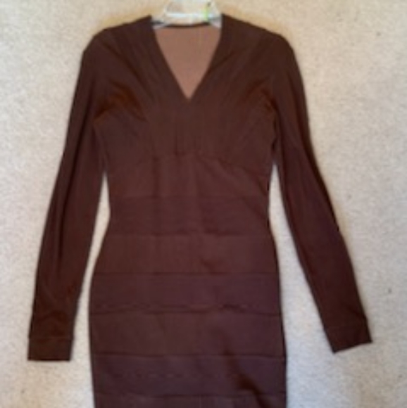 Brown stretch dress made in France. 45% cotton, 45% viscose and 10% lycra