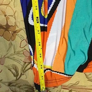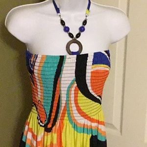 Beautiful Multi-colored sundress. Great Pre-owned condition! Nice jeweled tie string. Measurements from top-bottom & waist to bottom.