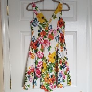 Floral print flare dress with pockets.