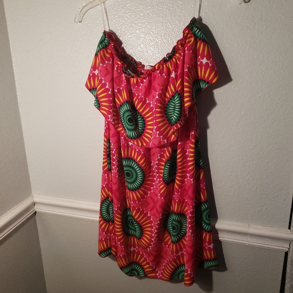 Strapless, fun dress. A line with a ruffle. Medium, light weight.
