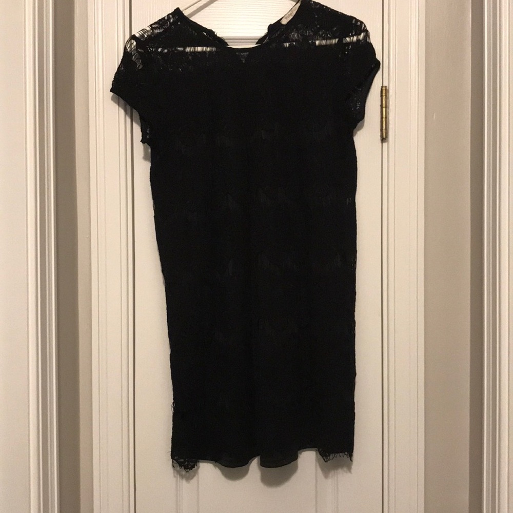 Black lacy double layer mid thigh length dress.